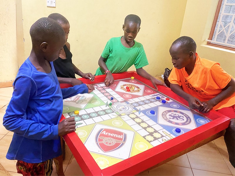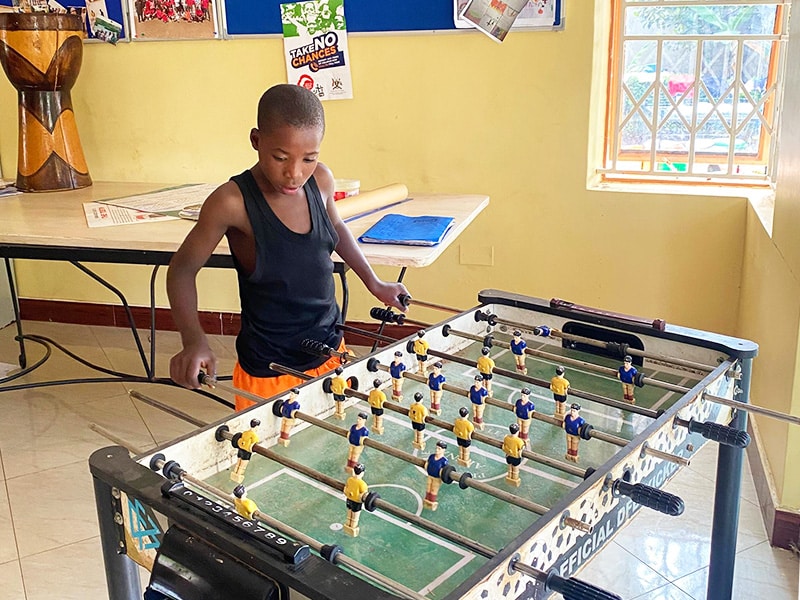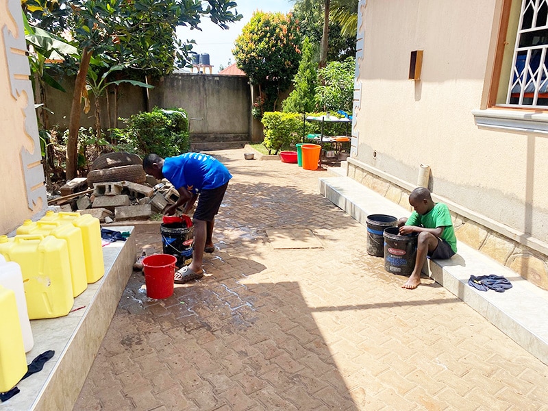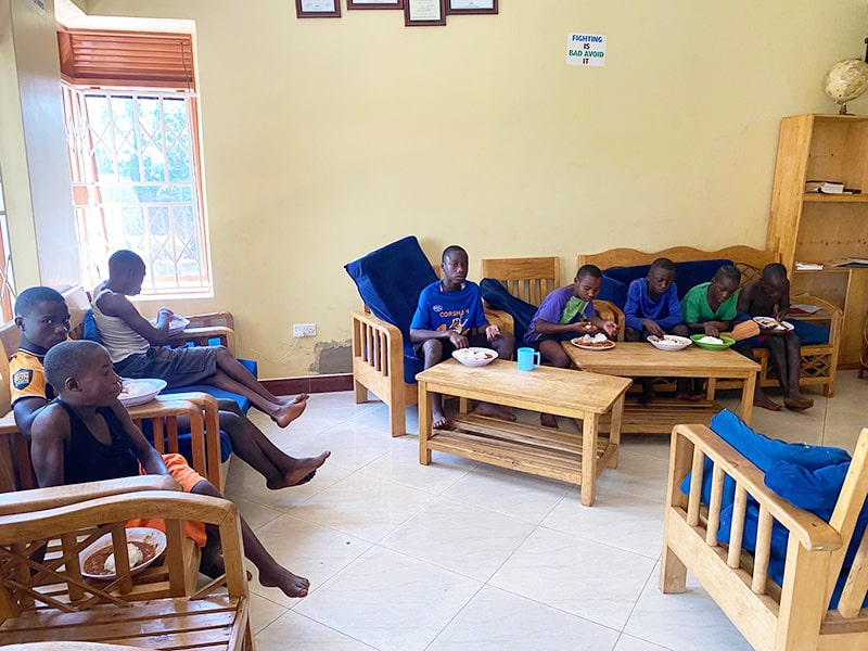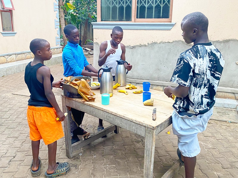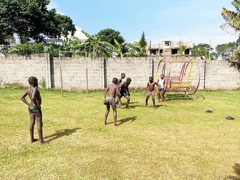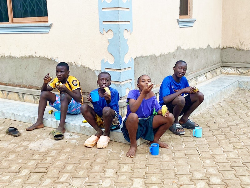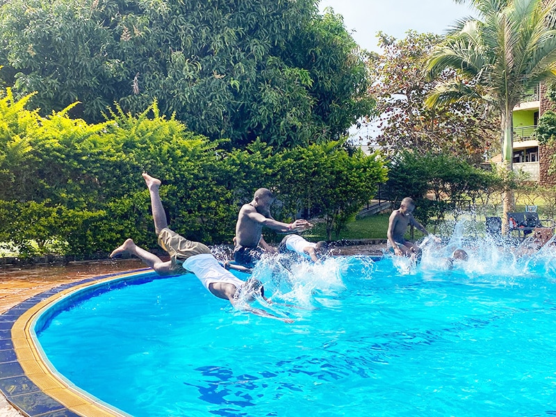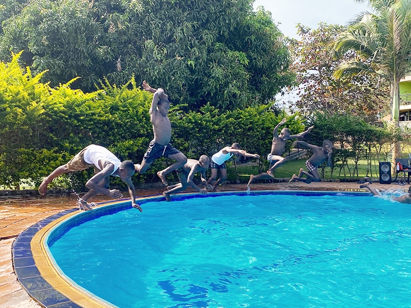 The younger boys have been at school all week. Robert had a new jumper for the ‘Colour Day’ at school. Tresor has sent photos of the boy’s, from today (Saturday) having breakfast, doing their chores, lunch time and then at the swimming pool enjoying themselves swimming and playing in the grounds. Kodet walked to meet them after his school classes.