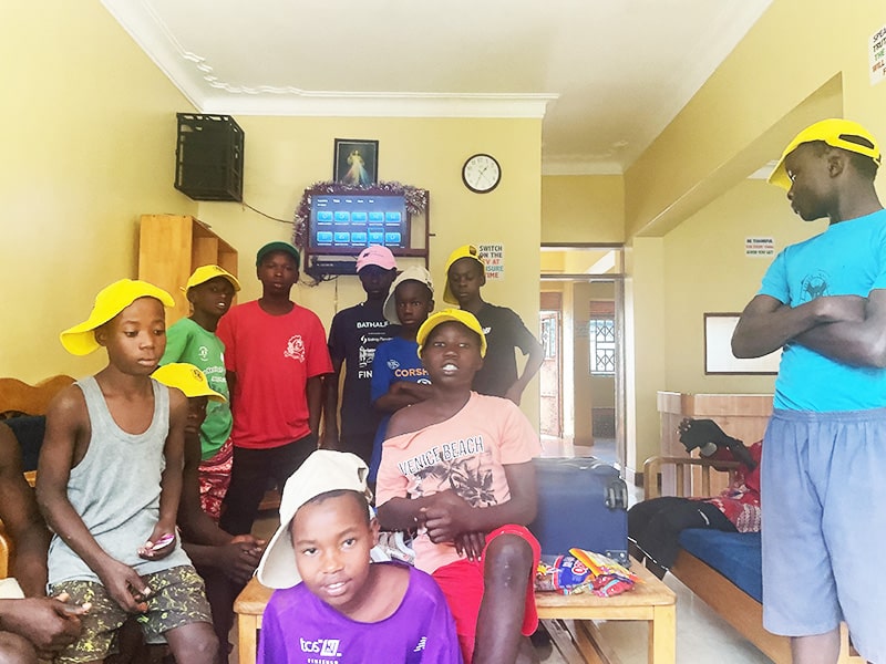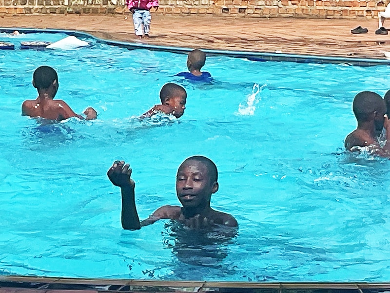 Saturday I went to see the boys and we took them swimming and to play football in the hotel grounds. It was very noisy at the pool as a DJ was playing loud music and there was obviously a celebration going on! The boys also received caps that someone had donated which they were very happy about.