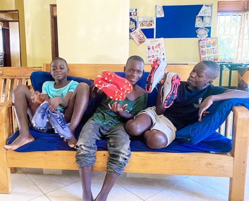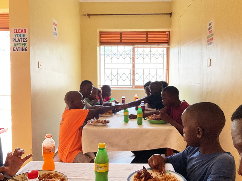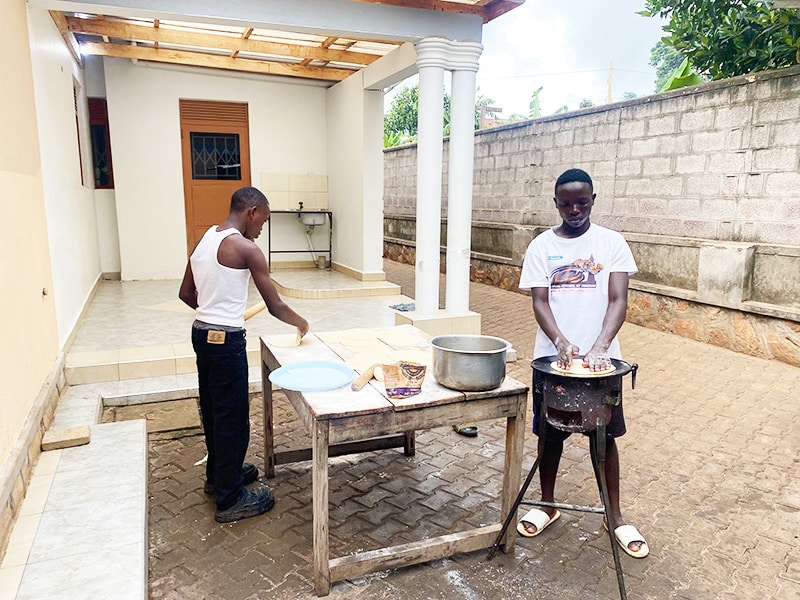 Greetings from a very noisy, busy Homes of Promise. We celebrated Christmas Day at Kampala International Church and 18 boys and staff came to the service. Following this I collected Griffin and Victor who had been working all night and most of the morning at the Speke Hotel – they were tired, there were 7 boys in my car and sadly Robert who had eaten too many cakes and biscuits after the service was unwell. (The car needed major disinfecting!) On arriving back at the home Bethel’s parents and brothers had arrived unexpectedly to celebrate with us, they are refugees from DRC, but seem to be well settled now. Thankfully Halima had cooked more than enough food and we enjoyed matoke, rice, greens, chicken, beef etc. followed by ice cream with sauces and Christmas cake. Later Benard took the younger boys down to Sky Beach to swim and enjoy the bouncy castle and swings. Derek has also joined us this year for Christmas – he’s been working in a garage and doing well.