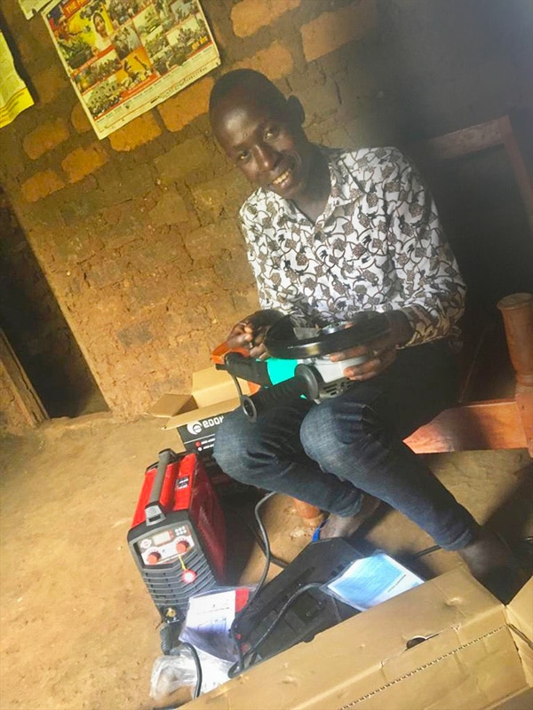 Shadrach sent me some more photographs of Derrick from last week, with the welding and grinding machines we have given him. He looks very happy! We are going to be helping him start up a small business so that he will be able to provide for his father and younger half-siblings.