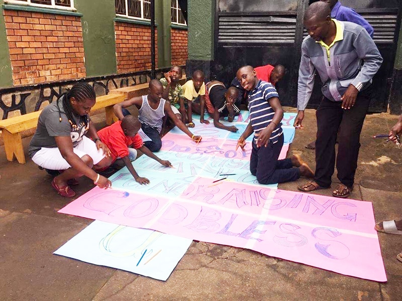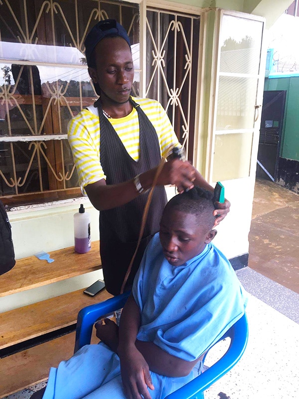 This week the boys have again enjoyed their art classes, especially making the enormous thank you message. They have received homeschooling from teacher Francis and are all fit and well. Everything is running well at George’s Place, I believe it is much quieter in the evenings now the older boys have moved into their own accommodation, some of the younger boys are still staying with relatives but will hopefully be returning shortly. The barber also came this week to shave the boy’s heads!