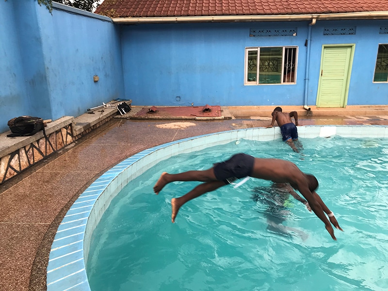 Some of the boys have been ill with tonsillitis, but after a few penicillin tablets have bounced back into action. Sam and I took the youngest ones swimming on Friday afternoon – it rained, they still enjoyed the water and we sheltered. Musumba was being taught how to dive by one of the attendants and did well.