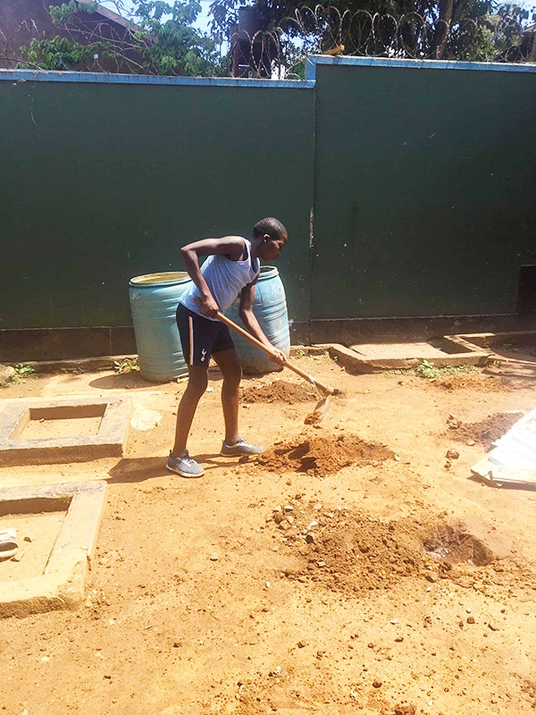 Some of the boys spent Thursday afternoon clearing and digging up part of the compound, to make a garden – where they want to be planting vegetables and tomatoes. There is a large avocado tree in one corner which gives us lots of wonderful fruit. The boys will need to go and collect soil as the ‘mud’ is unsuitable for growing anything. We have grown water melons, tomatoes and maize in the past at the front of the small house and also on the roof of the garage (I was worried with the weight issue at the time!). Now they have decided to work on a gardening project.