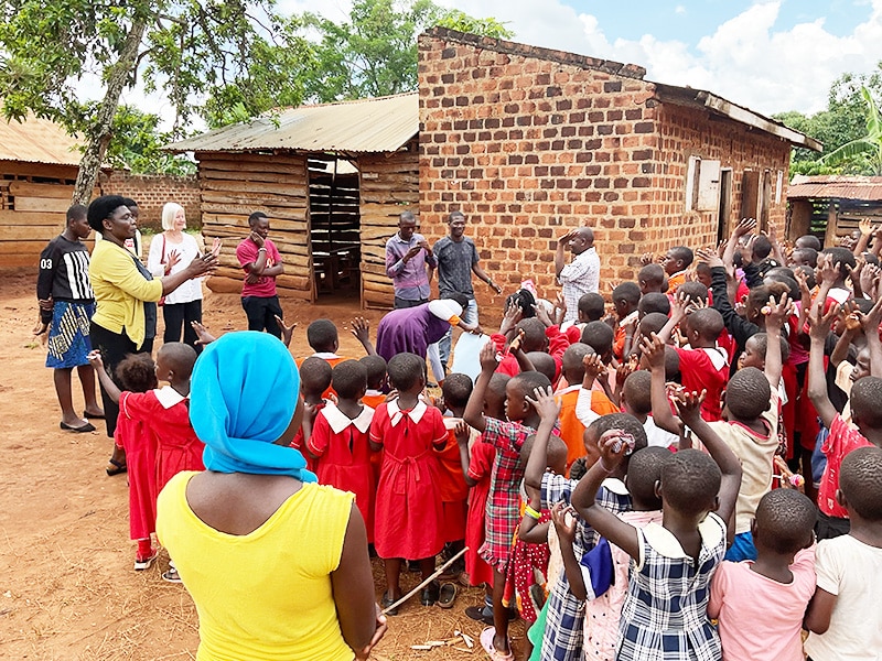 This week Peace and I travelled (Jessie driving) to Mbale and Tororo. On our way we called in at the school in Kayunga that Dan’s brother and sister attend and took exercise books, pencils, rubbers, rulers and posters for their classroom walls. The children greeted us and sang a couple of songs that Peace advised me had a good message about parents needing to be good examples to their children! We also took lollipops that Griffin and Peace’s niece Grace, who was travelling with us to Mbale gave the children and staff.