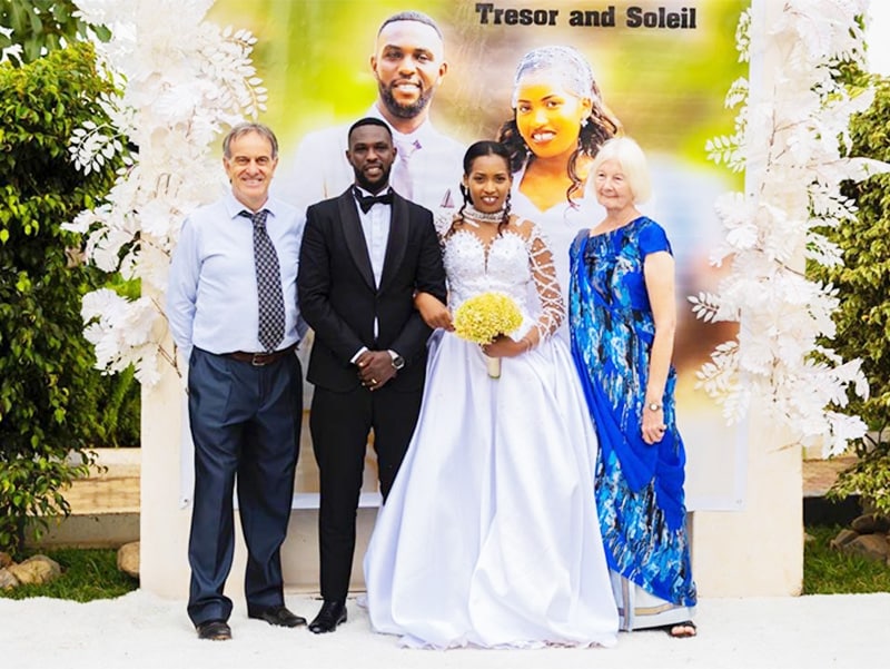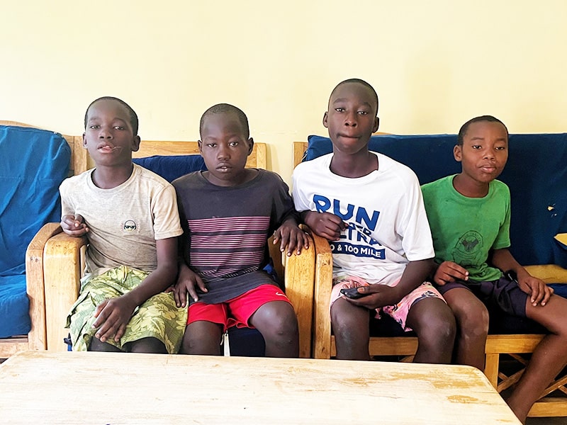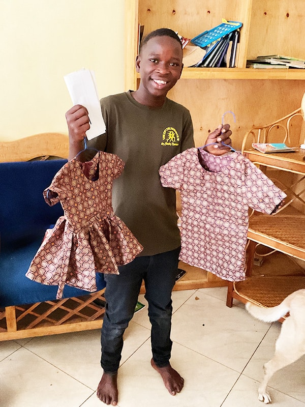 All the boys have returned home from school/college apart from Kasita who is visiting his family in Mukono. Tresor called at George’s Place one afternoon and took the younger boys with Kodet and Yusuf to visit him and Soleil at their new home, near Sky Beach, which was a real treat. Raymond asked if he could pray for them before they left. Young Denis had a sewing lesson so wasn’t able to go.