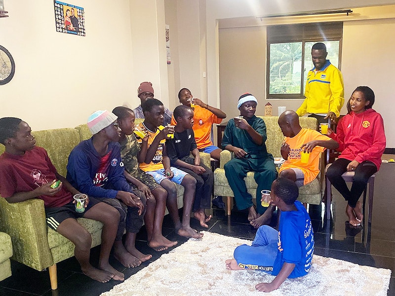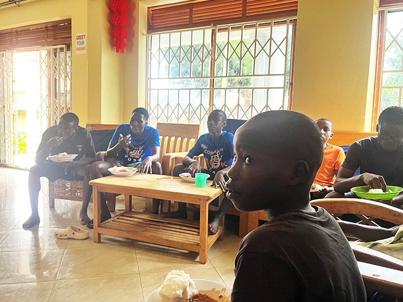 Boys back from school/college, visiting Dennis in Gulu, some of the boys visit Tresor and Soleil