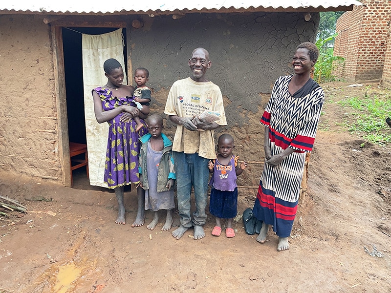 It’s the school holidays and we wanted to make sure that Dan’s family had food over the holiday period – George and Shila were working in the fields but the rest of the family were around. Jane, the youngest, is looking fine though the house was very damp. We bought them posho, beans, rice, sugar, soap etc.