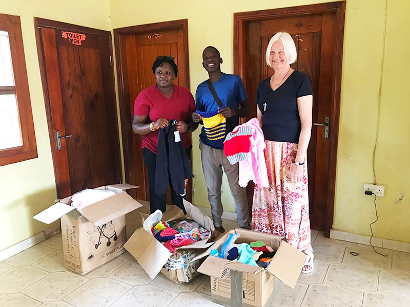 Mary who teaches the boys art arrived on Monday and we were able to give her three boxes of knitted baby clothes for her to take to the village this weekend to give to needy families. She and her friends take clothes, food, small amounts of money and pads for the women who have recently given birth. We had a chat and agreed for her to start her art classes again next Saturday. If she is teaching the boys outside I cannot see a problem. I brought some PCR tests back with me and did actually test a couple of the boys who had travelled from the village but they were both negative.